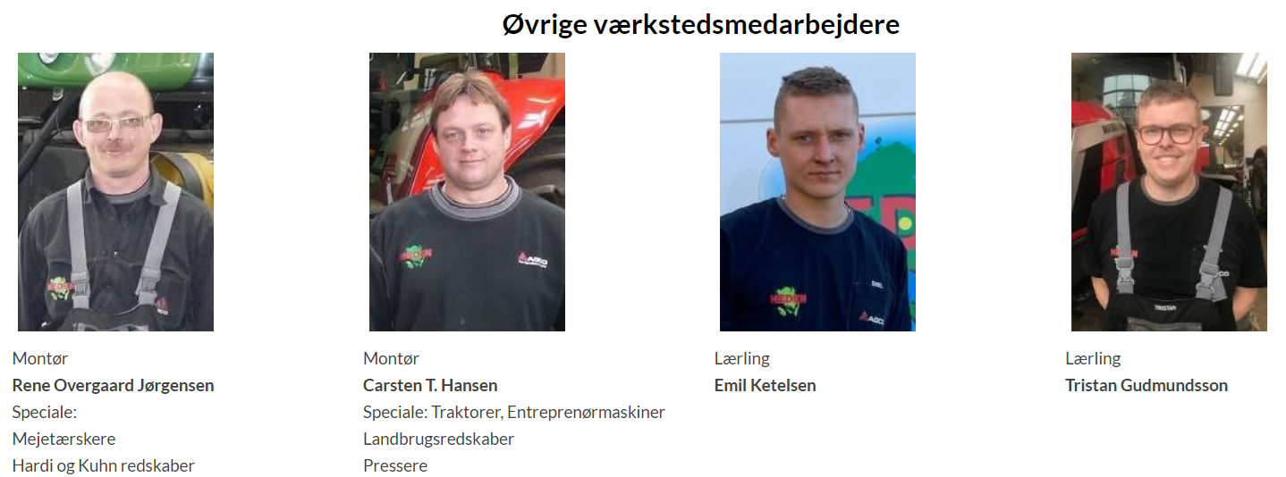 Den daglige ledelse af værkstedet varetages af værkfører Carsten Iversen, som har en lang erfaring med moderne landbrugs- og entreprenørmaskiner.